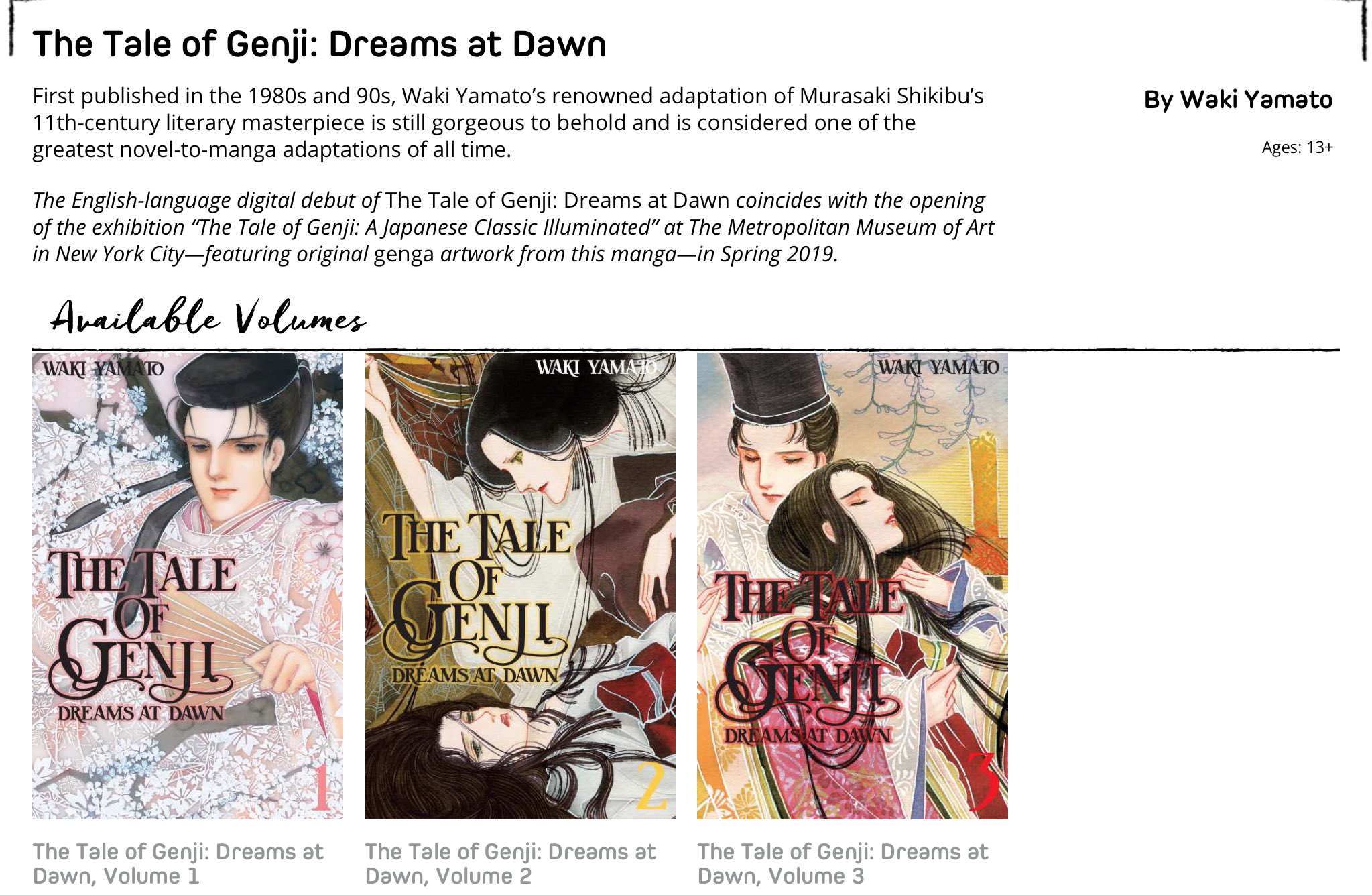 First published in the 1980s and 90s waki yamatos renowned adaptation of murasaki shikibus 11th century literary masterpiece is still gorgeous to behold and is considered one of the greatest novel to manga adaptations of all time. The tale of genji scroll c. Several sheets of paper pasted together and. A re telling of the tale of genji in manga form.